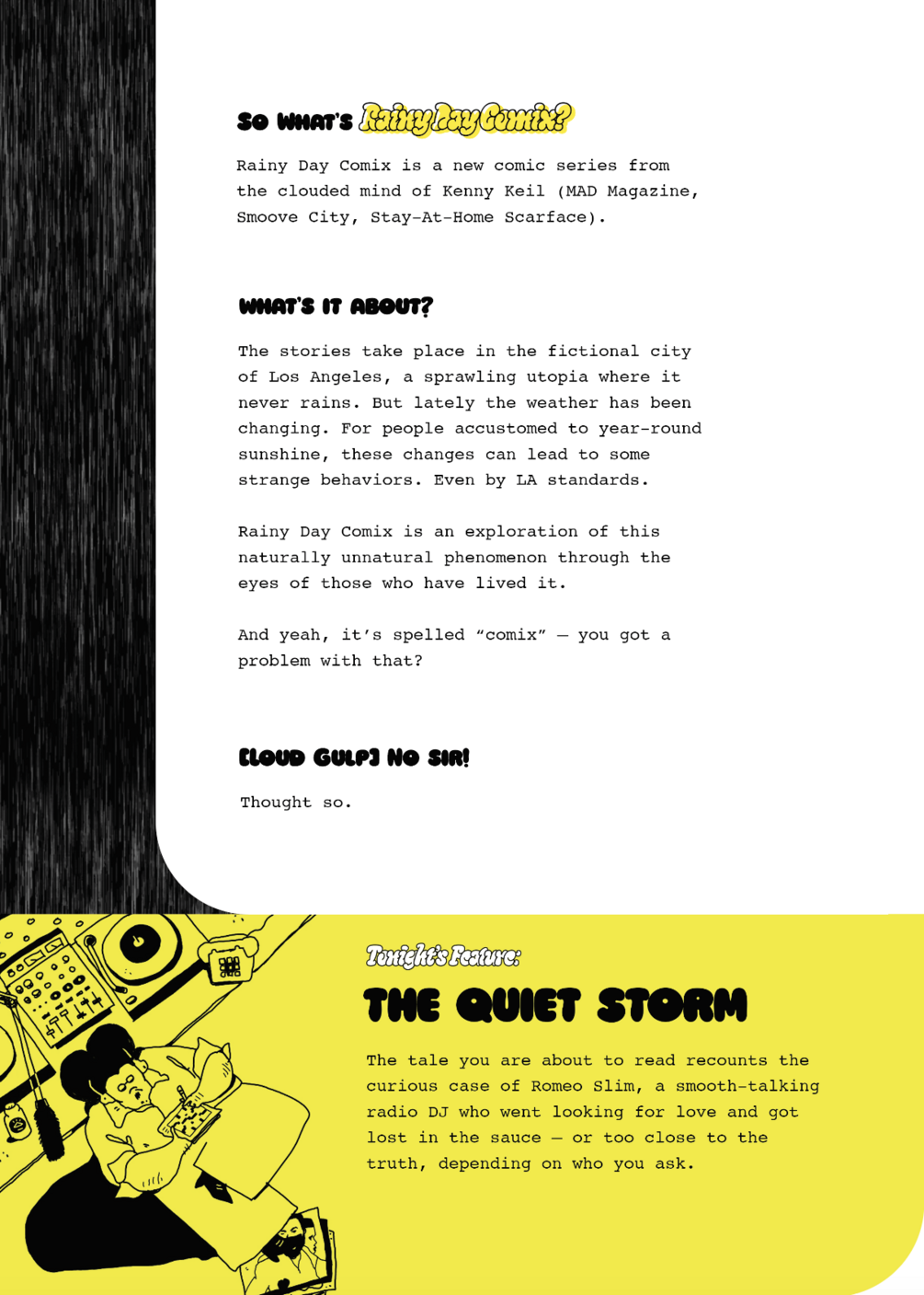"The Quiet Storm" is a 12-page comic about rain, obsession, and slow jams.